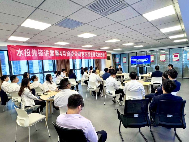 为紧跟AI时代发展潮流,深化党建与业务双融双促,投资公司于4月14日下午在五楼青年学习社举办水投先锋讲堂"DeepSeek智链产投——AI浪潮中的投资突围"暨主题党日活动。本次活动以"党建领航、数智赋能"为主线,特邀联储证券研究所两位资深分析师担任主讲,投资公司全体党员干部员工及咨询公司业务骨干共计30余人参与,通过"专题授课+互动研学"的形式,为干部职工搭建起前沿技术认知与投资战略思维提升的实践平台。