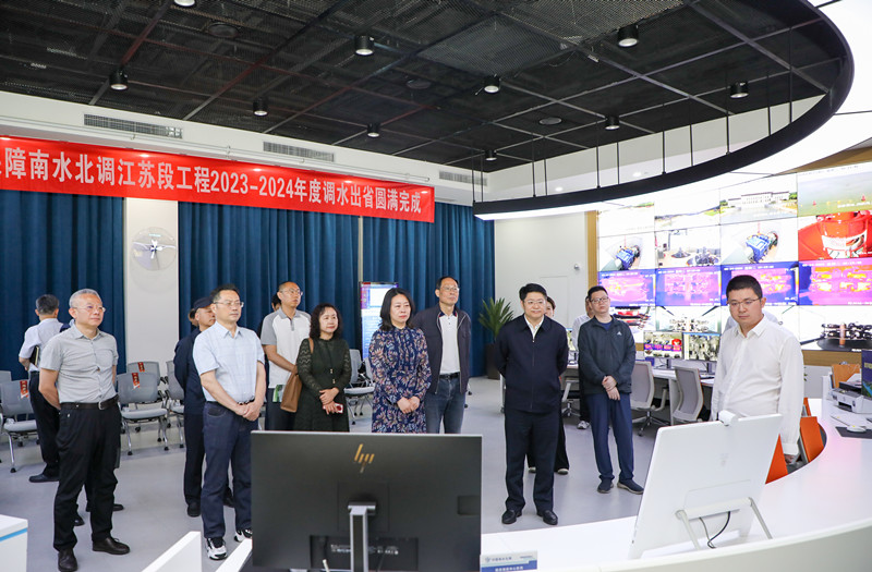 调研组一行首先来到南水北调江苏水情教育室,沉浸式走进南水北调东线工程,身临其境感受“大国重器”的魅力,全面了解南水北调在社会、经济和生态效益等方面取得的成绩。随后前往南水北调江苏调度中心,对南水北调东线工程调度运行管理系统,大型泵站群“远程集控、智能管理”的模式表示赞叹,并在现场与洪泽站一线产业工人进行了视频连线,感受南水北调工程运行情况。