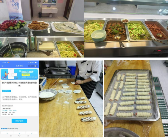 菜品优化,满足多元口味需求。徐州分公司多次更换供应商,只为将那最新鲜、最优质的食材搬上职工的餐桌,从源头上为食品安全与品质铸就一道坚固的防线。同时,每月发放问卷调查表,广泛征集职工意见,集思广益、畅所欲言,了解不同班次职工饮食习惯和规律,灵活调整食谱,按照健康养生、荤素搭配的原则,在丰富菜品种类和花样上做文章,做到菜品丰富健康美味,三餐营养搭配合理,创造出更多让职工满意的精品菜、特色菜、品牌菜,保证全体职工吃得安心、吃得营养、吃得放心、吃得暖心。