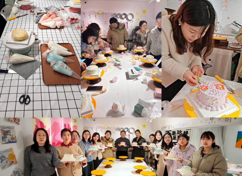 午后,开启“甜蜜烘焙时光”。烘焙现场,各种烘焙材料和工具整齐地摆放在操作台上,等待着大家的创意和巧手。在烘焙老师的指导下,大家分组体验蛋糕裱花、手绘创作等烘焙项目,忙得不亦乐乎。虽然是第一次尝试烘焙,但在老师的耐心讲解和示范下,她们很快掌握了基本的技巧。随着时间的推移,一个个造型独特、色彩缤纷的烘焙作品逐渐呈现在眼前。从手忙脚乱到渐入佳境,从普通面胚到精致甜点,大家在动手实践中收获了成就感与快乐。大家互相展示着自己的作品,分享着烘焙过程中的趣事和心得,现场充满了欢声笑语。完成的作品将被装盒带回家,为家人、朋友、同事送上特别的惊喜。