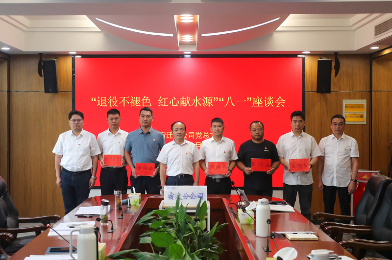 8月1日上午,在中国人民解放军建军98周年之际,宿迁分公司党总支、分工会组织开展了《退役不褪色 红心献水源》——情系老兵座谈会。分公司领导班子成员、在职退役军人参加活动。