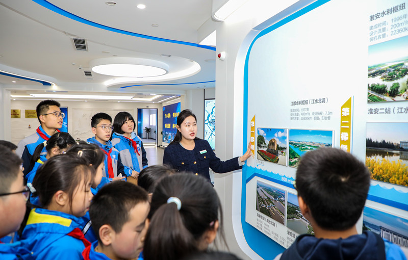 为大力宣传第三十二届“世界水日”和第三十七届“中国水周”,持续加强学生爱水、惜水、节水和护水教育力度,增强水忧患意识,掌握节水知识技能。3月27日,黑料 联合中国江苏网·新江苏客户端、“学习强国”江苏学习平台,组织开展“节水中国 你我同行——走进南水北调 感受大国重器”强国公益主题研学活动。来自南京玄武外国语学校附属小学的20位少先队员们一同走进南水北调江苏水情教育基地,跟随《东源流长 润泽四方》——南水北调东线工程宣传片,正式开启了此次“南水北调江苏水情教育”之旅。