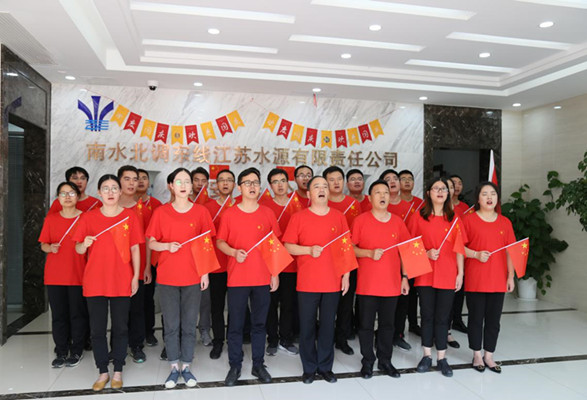 “五星红旗迎风飘扬……”“我和我的祖国,一刻也不能分割”!9月30日上午,高亢激昂的歌声在分公司响起。分公司领导班子率先垂范,身穿爱国主义文化衫,带领全体职工深情歌唱《国歌》《歌唱祖国》《我和我的祖国》《我爱你,中国》等歌曲,用歌声传递每一位南水北调人的爱国心声,共同祝愿伟大祖国更加繁荣昌盛,那一抹耀眼的中国红成为了分公司一道亮丽风景。
