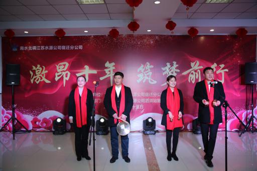 金猪辞旧岁、瑞鼠送春来。1月15日,宿迁公司以“激昂十年、筑梦前行”为主题的迎新春联欢活动在泗洪站管理所举行,分公司和泗洪站全体员工及宿迁东源职工代表一同联欢。