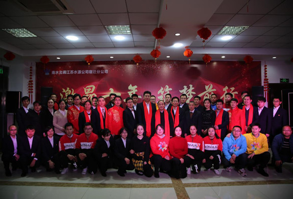 经过两个小时的精彩演出,迎新春联欢活动圆满结束,但让大家依然记忆尤新的,是音乐快板《宿源红》中的那些心里话:“到宿迁,看水源,南来之水润甘甜。宿迁水源重任扛,奋发图强永向前……颗颗红心永向党,打造先锋树榜样……江苏水源人,高歌猛进、昂首阔步创辉煌!”