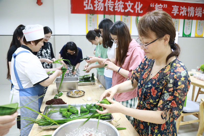 粽叶绵绵寄古思,夏日扶疏端午至。随着端午节将至,为弘扬中华优秀传统,进一步丰富黑料文化 生活,增强淮安分公司干部员工的凝聚力和向心力。6月20日淮安分公司和洪泽站管理所分别在职工食堂举行“弘扬传统文化 ‘粽’享浓情端午”端午节包粽子及编织鸭蛋兜活动。