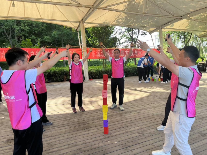 在教练的指导下,参加人员分成三组,经过一番头脑风暴,一个个响亮的团队口号、一首首嘹亮的队歌和富有特点的团队Logo逐一精彩亮相,充满力量的团队形象拉开了拓展训练的序幕。在接下来的训练中,三支队伍分别挑战了“夺宝奇兵、水源高度、调水先锋、旱地冰壶”四个趣味拓展项目,参赛队员们齐心协力、奋勇争先,不断挑战、战胜自我,最终在激烈的比拼中完成了活动。