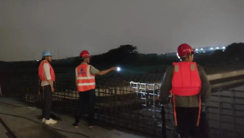 安全是工程顺利进行的基石。自6月下旬入梅以来,苏州地区极端天气频发,苏州市、昆山市两级政府多次发布暴雨、强对流天气预警信息,6月30日,防汛应急响应升级为III级。在连日暴雨与支河排涝的共同压力下,吴淞江水位超4米,顺河围堰有漫顶风险。技术服务组迅速响应,发出梅雨期间安全度汛和强降雨天气应急响应的通知,启动超标准洪水应急预案。严格落实值班巡视要求,组建应急抢险队伍加固围堰,并加强抢险物资设备保障。全面排查施工现场安全隐患,分时段、分地点与值班巡视组联合开展水位、围堰变形观测工作,突出重点检查建设项目临时围堰、临时用电等,对发现的问题立行立改,消除安全隐患。