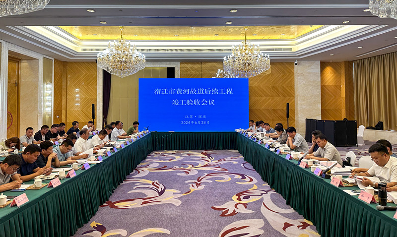 验收会由宿迁市水利局主持。江苏省水利厅,宿迁市发改委、财政局、水利局,相关区县水利局等专家组成验收委员会。验收委员会查看工程现场,查阅工程资料,观看工程建设声像资料,听取工程建设管理工作报告、竣工技术预验收工作报告、质量监督报告、竣工决算审计决定。经过认真讨论和综合评议,验收组形成一致意见,认为宿迁市黄河故道后续工程已按批复设计内容实施完成,工程标准、质量满足设计和规范要求,14个施工标段皆达质量评定最好等级,竣工验收委员会同意宿迁市黄河故道后续工程通过竣工验收。