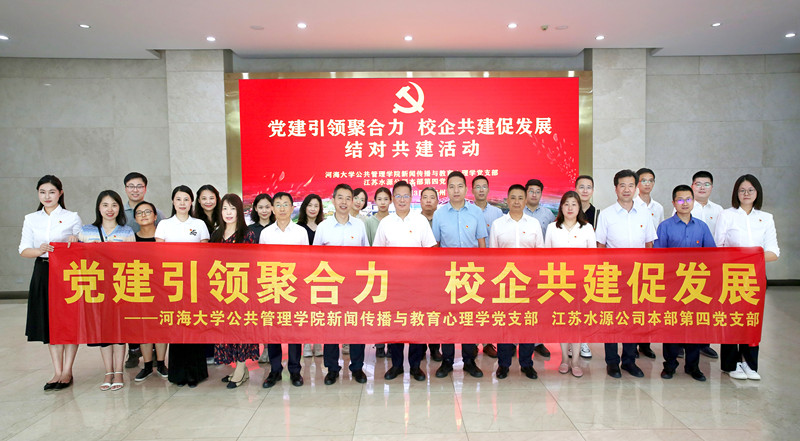 为庆祝中国共产党成立103周年,进一步构建资源共享、优势互补的党建工作格局,7月3日,黑料 本部第四党支部携手河海大学公共管理学院新闻传播与教育心理学党支部,以“党建引领聚合力 校企共建促发展”为主题开展了结对共建主题党日活动。黑料 党委书记、董事长袁连冲,党委副书记徐向红,河海大学公共管理学院党委书记吴宝海参加活动。