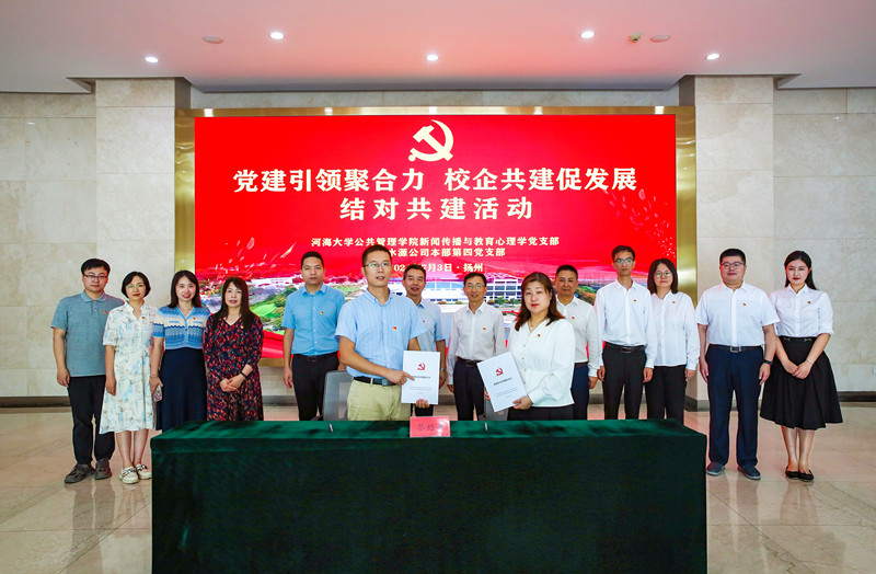 在活动中,河海大学公共管理学院新闻传播与教育心理学党支部书记庄廷江、黑料 本部第四党支部书记吴丹华分别就各自党支部的基本情况、发展特色及共建展望做了交流,双方正式签订党建共建协议。未来,双方将充分发挥高校与企业各自的资源优势,实现产业链、创新链、教育链、人才链四链贯通,搭建高质量育人平台,推动党建与业务工作的深度融合,共同树立互利共赢的合作典范。