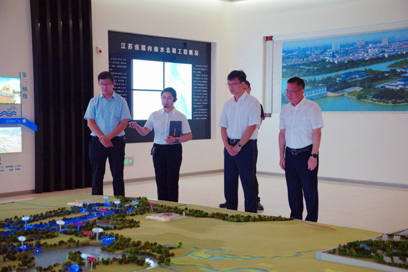 8月27日,国家开发银行江苏省分行唐力行长一行赴江都、洪泽站调研,公司党委书记、董事长袁连冲陪同。调研组一行实地参观了南水北调东线工程规划馆、江都集中控制中心、江都四站、洪泽站以及三河闸。