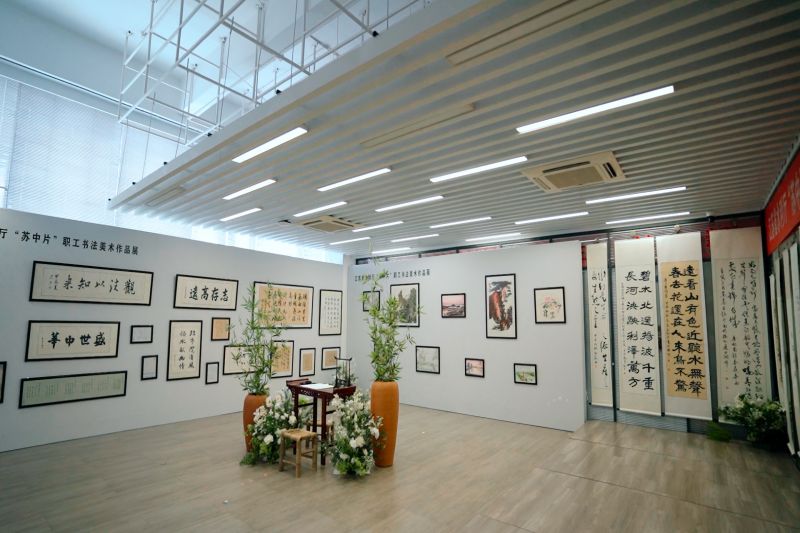 观展现场,大家驻足在一幅幅精美的艺术作品前,专心欣赏、耐心品味,或拍照留念或交流心得,每一幅独具匠心的作品在“一笔一画”间立意鲜明,书法作品行云流水,绘画作品栩栩如生,凸显鲜明的水利特色,融思想性和艺术性为一体,集创意性和表现力于一身,用艺术的视角、鲜活的构思、生动的笔触传递着水利工作者对水利事业的热爱、责任和担当。此次书法美术展不仅是一次视觉的盛宴,更是一场“弘扬文化”的水韵盛会,不同风格、不同技法的作品因水利结缘、以书画寄情,充分展示了广大水利工作者日复一日、年复一年的坚守与执着,营造了以文化人、以文润德的浓郁氛围,为赋能水利事业高质量发展提供坚强保证!