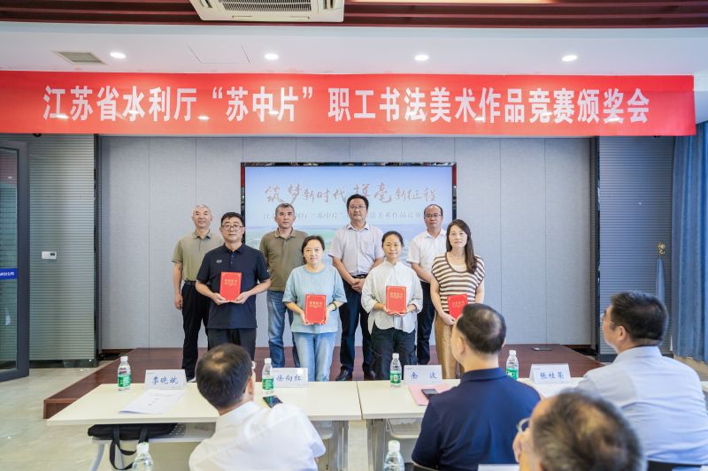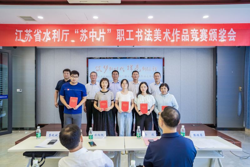 本次职工书法美术作品展主要围绕水利工程、水情教育、节水护水、水文化等主题,广泛征集广大水利职工书法美术作品,充分展示水利职工精神风貌,抒发职工对水利和南水北调工作的热爱。本次活动收到书法美术作品共计45件。特邀省书法家协会会员祁朝标、国家一级美术师孙德高参与评审,共评出一等奖作品2件,二等奖作品4件,三等奖作品9件。其中,黑料 扬州分公司《节录习近平总书记在推进南水北调工程高质量发展座谈会上的重要讲话》书法作品、省水建《瓜洲泵站》绘画作品荣获一等奖;省水文局扬州分局《写唐诗<画>》、省水建《水利春天》等书法作品,黑料 扬州分公司《节约用水 你我同行》、省水利勘测设计院《高港枢纽》等绘画作品荣获二等奖;江都管理处《上善若水 厚德载物》、省水建《志存高远》、省水建《春江花月夜》、扬州市水利局《习近平总书记视察江苏扬州重要讲话金句摘录》、省工勘院《赞工勘精神》等书法作品,省水文局扬州分局《精准测报 守护安澜》、省水利勘测设计院《航运·邵伯》、江都管理处《绿水青山就是金山银山》、泰州引江河《漫山红遍》等绘画作品荣获三等奖。