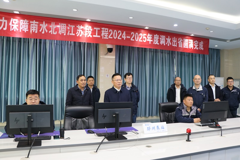 在邳州站中控室,袁连冲通过视频连线慰问坚守在集控中心和调水一线的泵站运行管理人员,听取调度中心、集控中心、各站所有关调水进度和运行情况等,就全力以赴完成年度调水工作提出要求。他指出,2024—2025年度调水工作因受雨水情、前期省外工程实施等因素影响,目前完成年度调水出省任务的35%,根据年度方案后续任务比较艰巨。他强调,要加强动态分析研判。公司调度部门、分公司和各现场管理单位要充分认识今年调水工作面临的新情况新要求,统筹做好省外调水运行和省内抗旱服务准备,强化双线满负荷、大流量、高强度调水运行思想准备,加强机组运行情况分析,做好主机组维修保养,确保工程随时“拉得出、打得响”。要不断优化科学调度。主动加强与省水利厅、流域相关机构、南水北调相关单位汇报沟通,及时掌握河湖库水情和相关工程工情,统筹考虑调水线路和雨情工情等情况,科学会商研提调度工作方案。要重点围绕泵站运行自动化和优化调度开展攻关,继续强化“五小”创新工作,不断提高工程调度运行水平。要保障工程运行安全。结合省国资委近期安全生产工作部署要求,自觉从维护“三个安全”“四条生命线”的政治高度抓好调水运行和安全生产各项工作,压紧压实各方责任,加强人员和技术保障,强化设备维护保养,做好工程运行期间巡查值班,密切关注工程运行状况,确保东线江苏段工程安全高效运行。