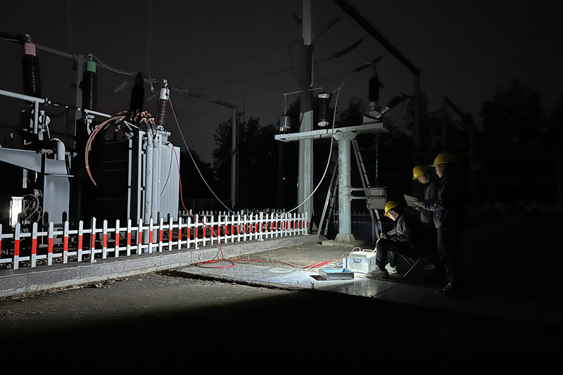 夜幕下的临洪东变电所,突击队正对白天试验数据异常且伴随较大放电声的3#主变本体进行遮光试验,经过近2个多小时的故障排查,最终锁定隐患源头——变压器低压侧B相桩头松动,在确认问题后,当即对松动的桩头进行紧固并重新复测,最终测量结果显示正常。这只是试验现场的一个缩影,在项目实施过程中,试验团队始终坚持“检测精度到毫米、数据追溯到毫秒”的标准,严格按照规程要求,不放过任何细微的异常数据,进行反复核查验证,确保检测结果的准确性;期间对于发现的个别设备老化或性能参数偏差,详细记录情况及时汇报业主,并积极主动提供更换服务,高效优质服务得到了业主的高度认可。