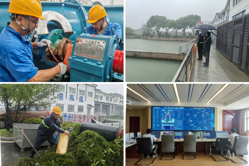 应对台风“竹节草”影响下的强降雨期间,苏州所有委管防洪大包围骨干枢纽及配套工程最多投入21台套机组排涝,瞬时排涝能力达138.5m3/s。本次应急响应,项目部投入保障队伍82人,开展特殊天气巡查140巡次,苏州主城区防洪大包围工程累计运行382.09台时,排涝914.09万m3,打捞水草15余吨,保障了苏州主城区一方安澜。