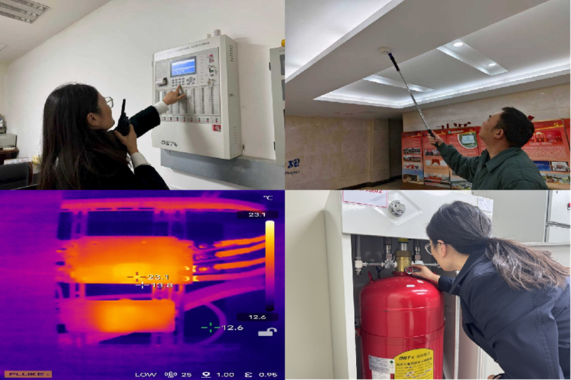 本次检查聚焦三大关键领域,实现隐患排查无死角:一是消防设施“全量核查”,对楼内34余具灭火器、3个消防栓、2套应急照明系统及疏散指示标志逐一核验,详细记录设备型号、检修日期及运行状态,确保设施“在岗有效”。二是电气安全“科技赋能”,重点检查配电室线路敷设、办公区域大功率电器使用情况,创新运用热成像仪对各配电柜(箱)进行测温检测,精准排查线路过热等隐性风险,现场整改私拉乱接电线、插座超负荷运行等显性隐患。三是重点区域“靶向检查”,严格核查各楼层消防通道畅通情况、防火分区防火门关闭状态,专项检查机房气体灭火系统运行状况,守住消防安全关键防线。