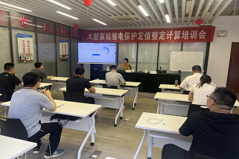 以人才创新为核心驱动力,聚焦关键技术攻坚,通过多元创新激发内生动力,储备核心技术力量。内外培训双向赋能。构建“项目带练+专题培训+经验分享+外部引智”立体化培训体系,分层分类开展运维专项技能培训、大型泵站继电保护定值整定计算专题培训会等培训9次。在此基础上,逐步从“无”到“有”建立起继电保护定值核心计算能力,自主完成宝应站、金湖站的继电保护定值计算工作,并通过专家审查。同时引入行业优质资源,邀请高校专家等开展“数字孪生应用实操”等培训,补齐技术短板。内部研讨破解难题。常态化开展技术交流研讨,围绕泵站自动化运维、热继电器校验等运维实际问题,定期召开交流会,组织技术骨干剖析问题成因、研讨解决方案,成功解决金湖站2#冷水装置综合故障报警、宝应站冷水机组远程无法启动等3项现场运维难题,提升团队攻坚与问题解决能力。“五小”创新攻坚破局。聚焦工程运维难点与降本增效需求,推进5项“五小”创新项目。创新宝应站“清污机+移动液压抓斗+浮筒”组合模式,实现“主动拦截、分区管控”目标;维检中心革新传统电气试验报告编制方式,采用移动端平板记录替代传统纸质记录及事后计算编制报告模式,实现“试验开始即报告编制”目标。通过系列“五小”创新精准解决工程运维堵点、痛点,让创新成果切实转化为工程高效运行内生动力。