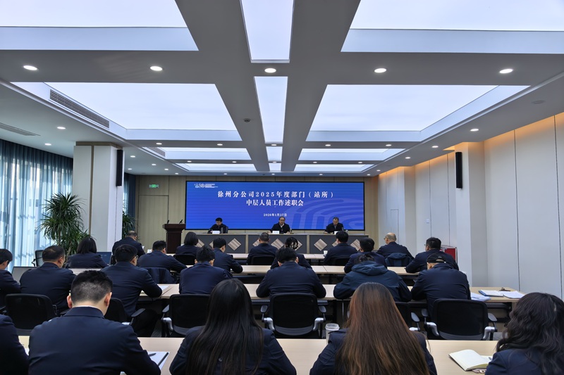 为全面总结2025年度工作成效,客观评价各部门(站所)及中层人员履职情况,进一步压实工作责任、明晰发展方向,凝聚推动企业高质量发展的奋进力量。1月27日,徐州分公司组织召开部门(站所)及中层人员年度述职评议会议。公司领导班子成员、各部门中层人员及职工代表参加会议。