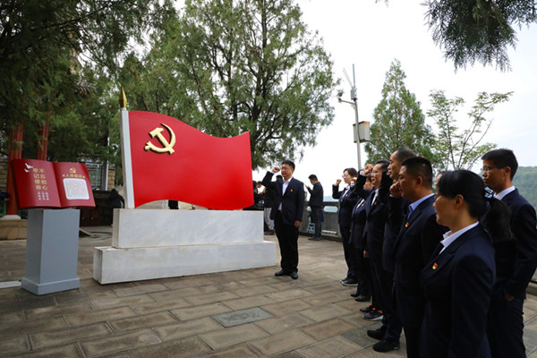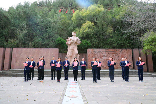 在宝塔山,全体学员重温入党誓词,通过现场讲解教学学习革命先辈以坚定正确的政治方向,解放思想、实事求是的思想路线,全心全意为人民服务的根本宗旨,自力更生、艰苦奋斗为主要内容的延安精神。