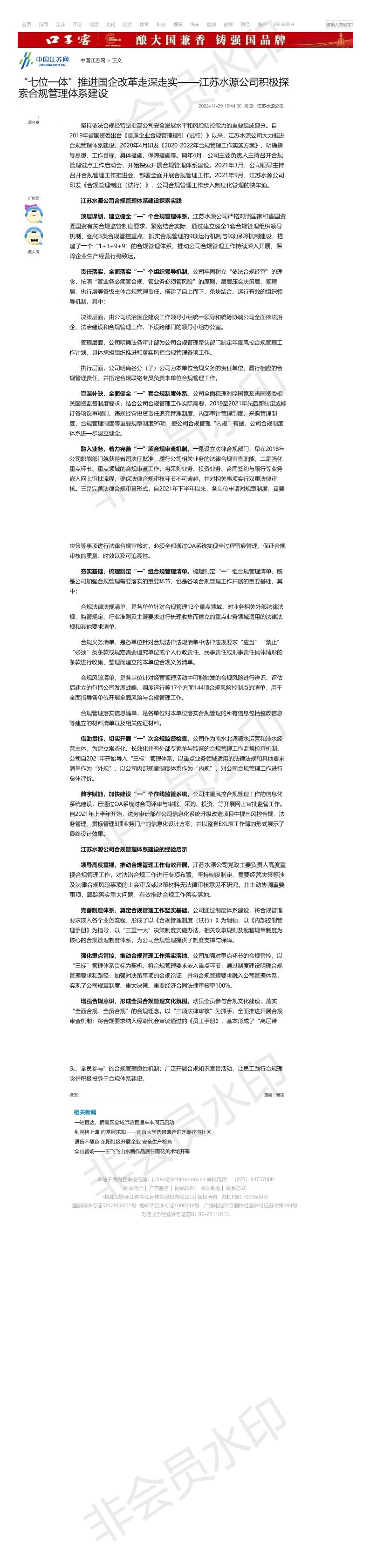 中国江苏网、新江苏网:“七位一体”推进国企改革走深走实——黑料 积极探索合规管理体系建设