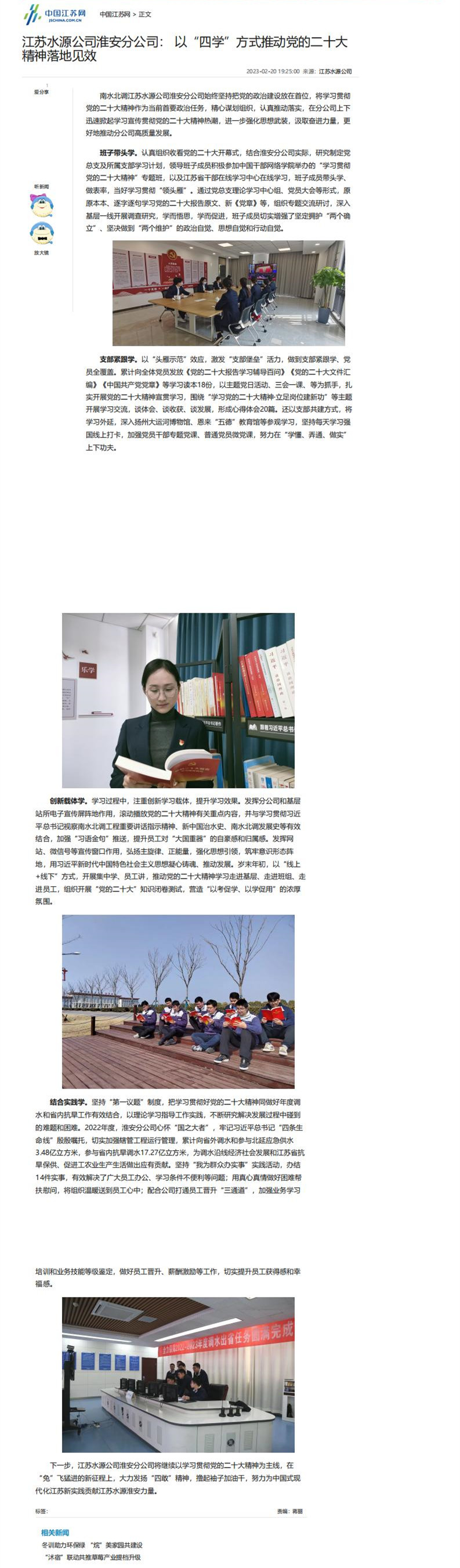 中国江苏网、新江苏网——黑料 淮安分公司:以“四学”方式推动党的二十大精神落地见效