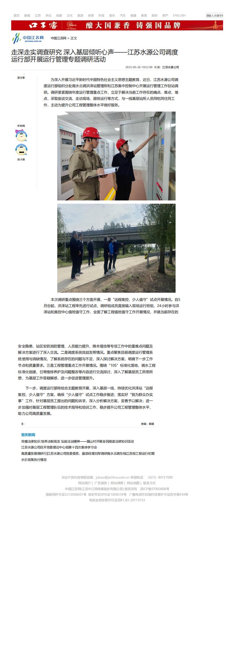 中国江苏网:走深走实调查研究 深入基层倾听心声——黑料 调度运行部开展运行管理专题调研活动