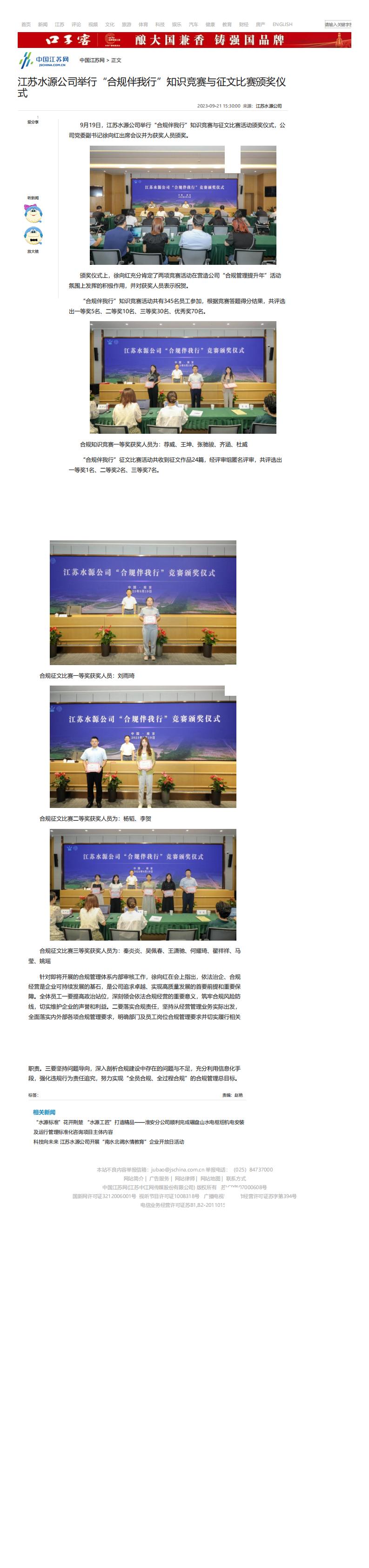 中国江苏网——黑料 举行“合规伴我行”知识竞赛与征文比赛颁奖仪式