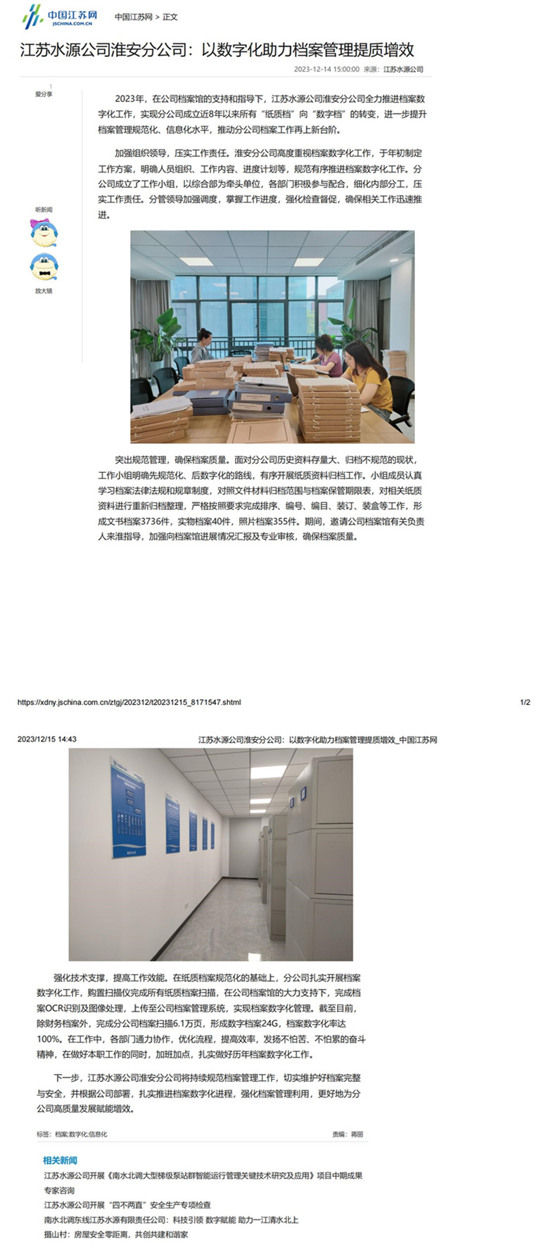 中国江苏网——黑料 淮安分公司:以数字化助力档案管理提质增效