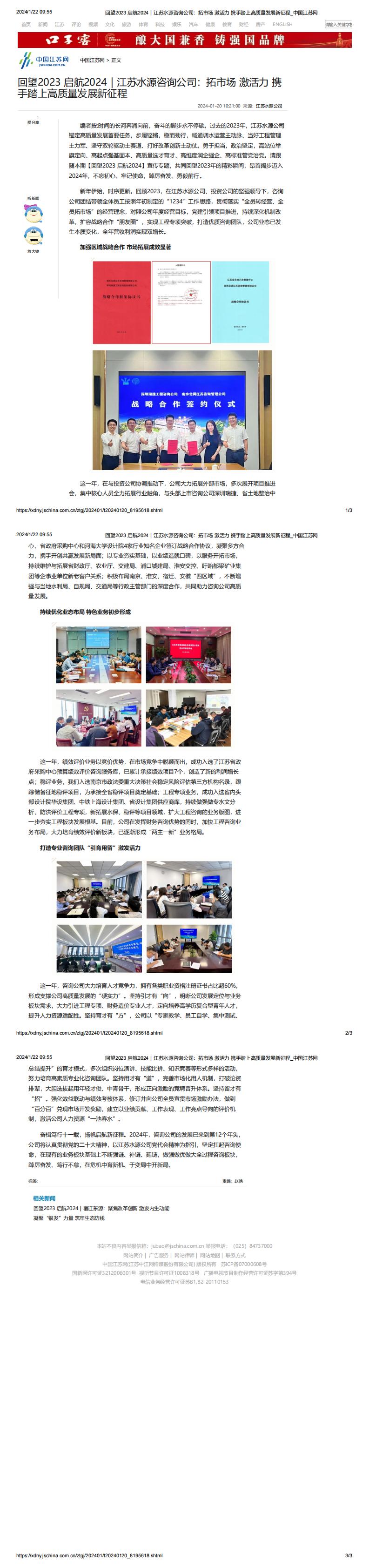 中国江苏网——回望2023 启航2024|江苏水源咨询公司:拓市场 激活力 携手踏上高质量发展新征程