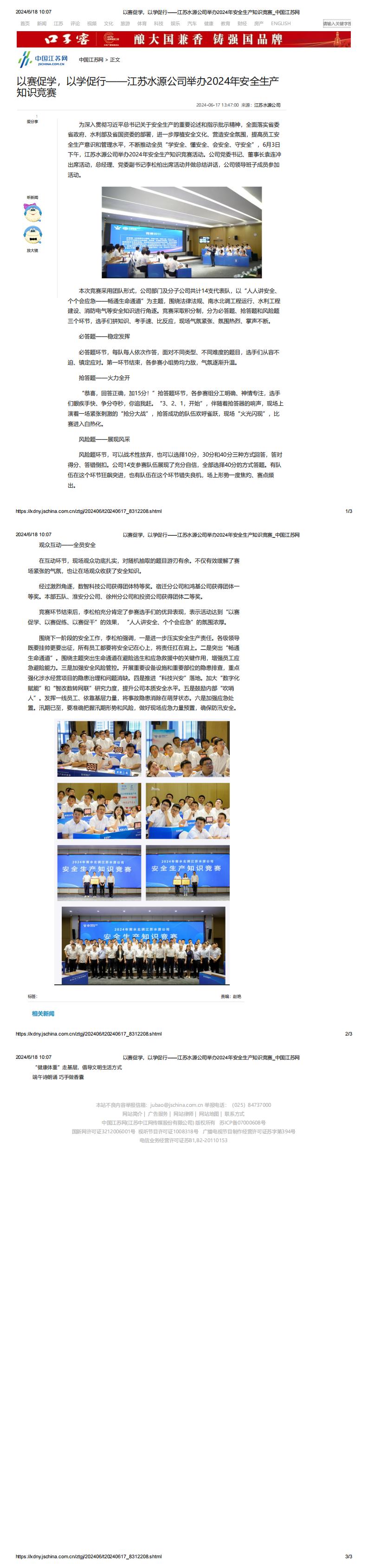 中国江苏网:以赛促学,以学促行——黑料 举办2024年安全生产知识竞赛