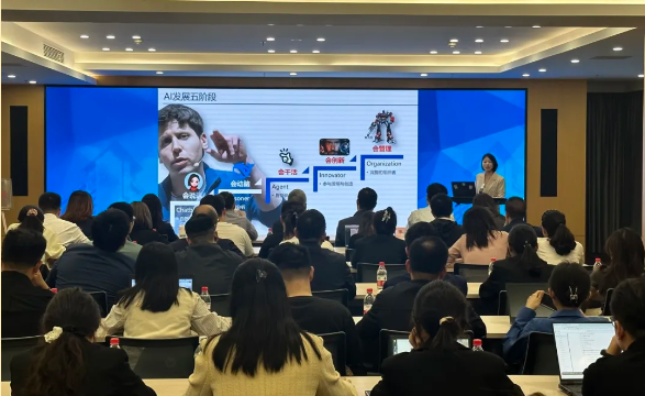 4月24日,“六联六共”团建联盟“青年夜校”揭牌仪式在南京举办。“青年夜校”品牌成立旨在为进一步丰富企业广大青年员工业余生活,提高文化素养和技能水平,助力青年员工全面发展。首期“青年夜校”活动由国信集团团委牵头举办,邀请数字化领域著名专家授课“人工智能赋能高效办公”,详细讲解了AI工具的指令执行技巧及应用案例,让大家深刻认识到AI技术是效率革命、工作模式的颠覆性升级。