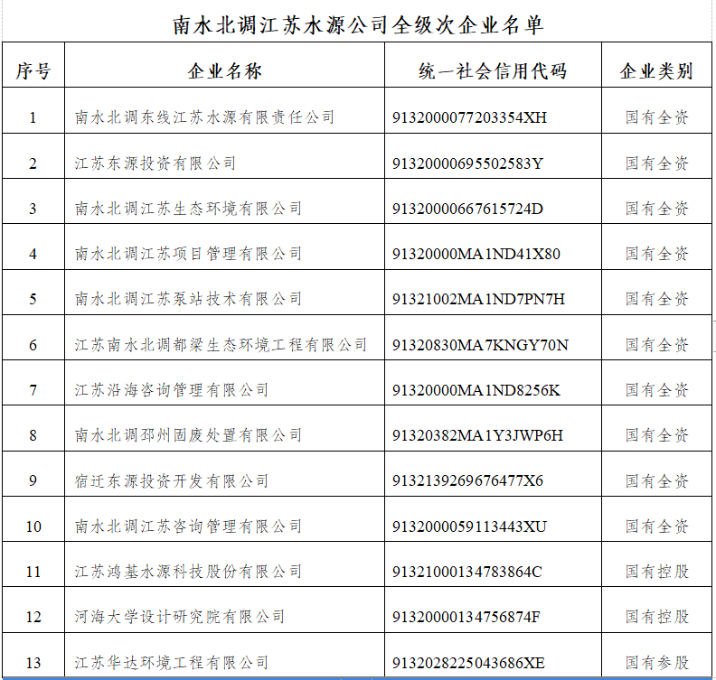 扬州分公司 淮安分公司 宿迁分公司 徐州分公司 项目分公司 江苏东源投资有限公司 南水北调江苏生态环境有限公司 南水北调(江苏)数智科技有限公司