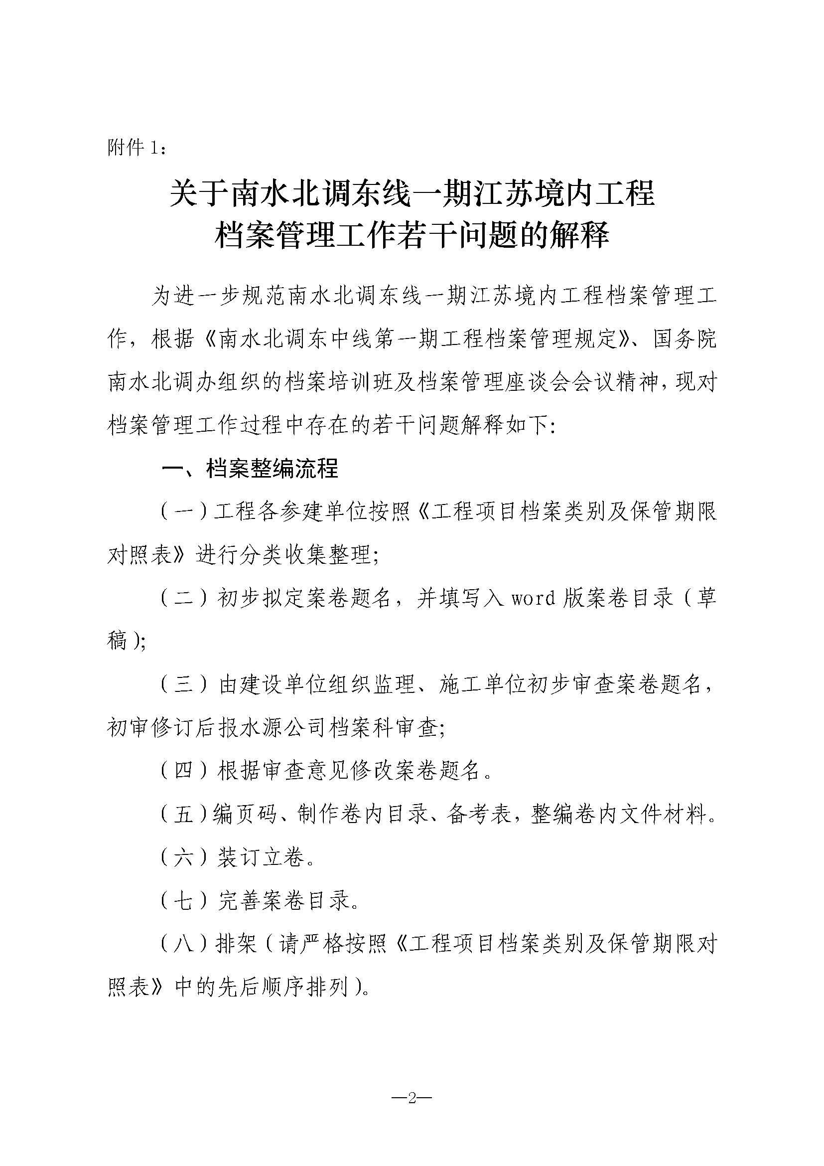 关于印发《南水北调东线一期江苏境内工程档案管理工作若干问题的解释》的通知》